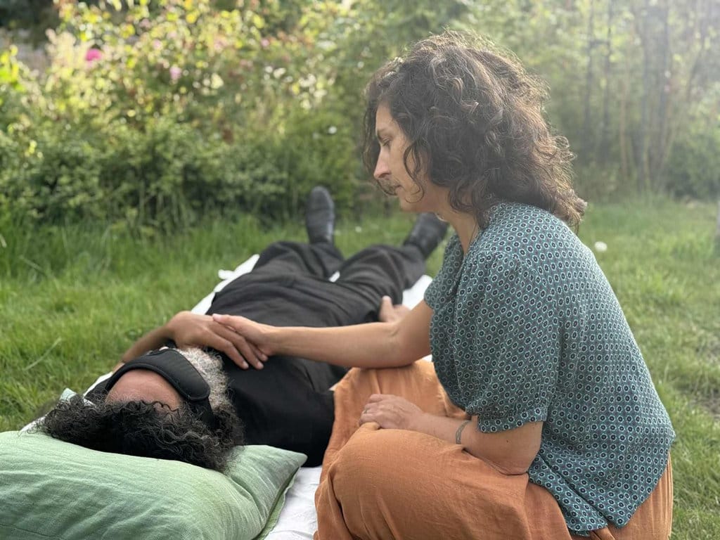 Retreatplatsen är omsorgsfullt vald för att skapa trygghet och närvaro. Musik är en central del av processen och används för att spegla och stödja energin i rummet.